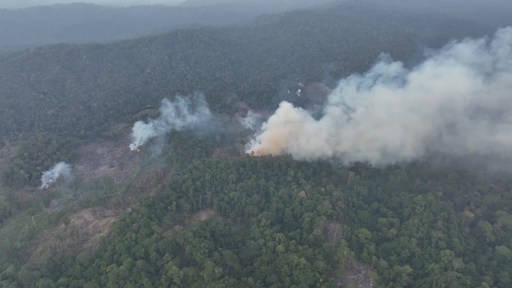 Tampak aktivitas diduga pembakaran untuk membersihkan lahan yang dilakukan secara ilegal di dalam konsesi PT BAT. Didokumentasikan apda November 2025. Foto: Forum KEE Koridor Gajah Seblat.