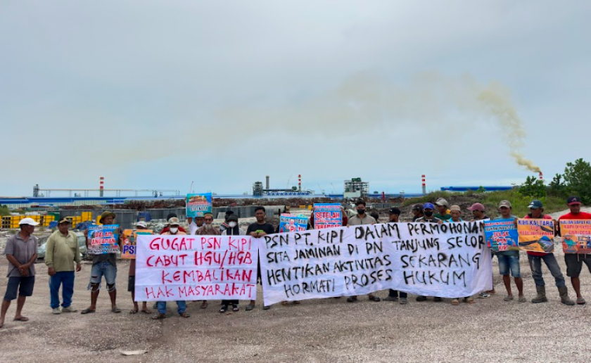 BETAHITA.ID -  Masyarakat terdampak Proyek Strategis Nasional (PSN) PT Kawasan Industri Park Indonesia (KIPI), Kalimantan Utara, menggelar aksi untuk memprotes aktivitas perusahaan yang diduga telah merampas lahan warga serta merusak lingkungan dan penghidupan warga.