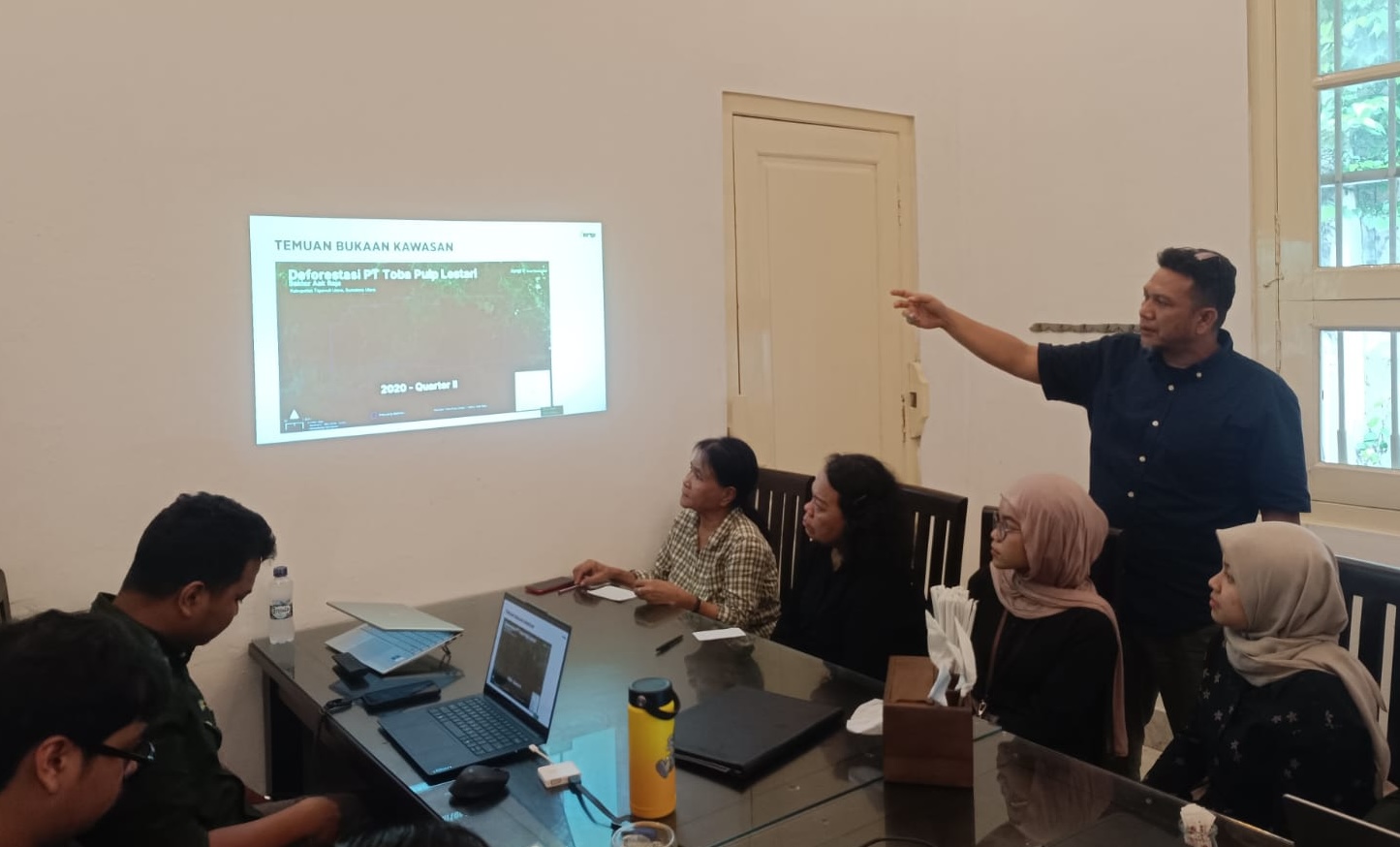 Direktur Gakkum Auriga Nusantara, Roni Saputra, menjelaskan pelanggaran oleh PT TPL. Foto: Aryo Bhawono/Betahita