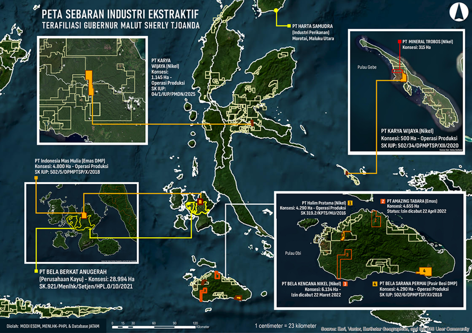 - Mengusut skandal 27 IUP bermasalah di Malut dan jejaring korporasi yang diuntungkan, termasuk hubungan dengan pejabat daerah dan elite politik nasional.
