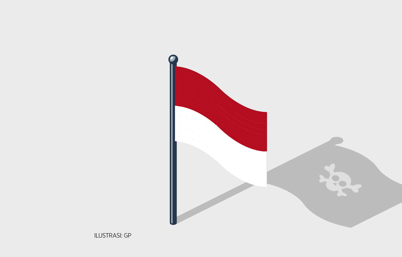 Bendera Merah Putih dan bayangan bendera perompak (ilustrasi). Gambar: GT/Betahita